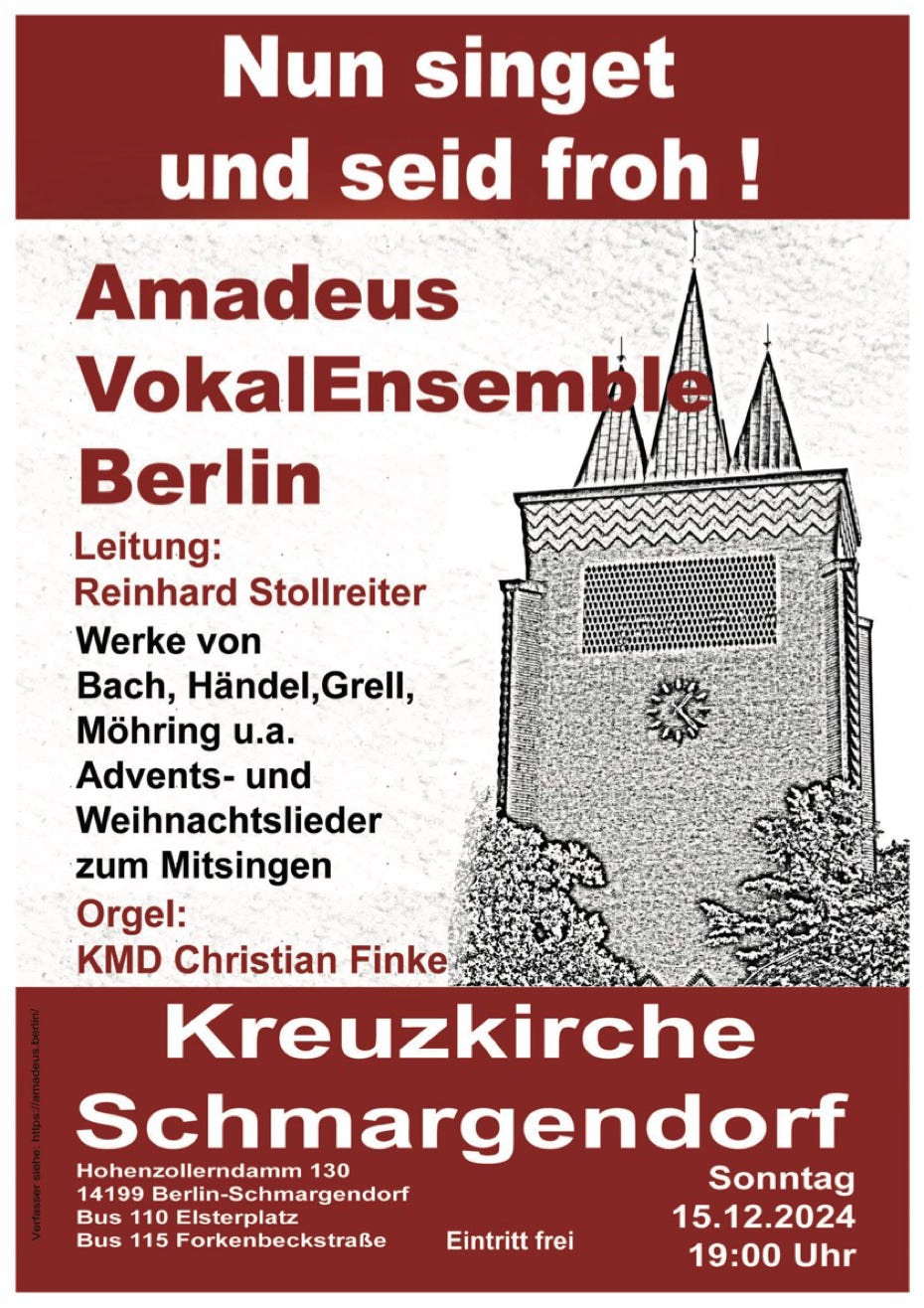 Unser Weihnachtskonzert findet am 14. 12. 2025 um 18 Uhr wieder in der Kreuzkirche Berlin-Schmargendorf statt.